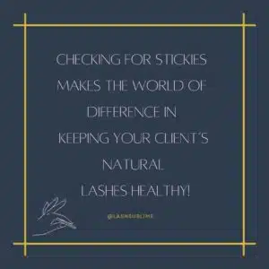Checking for stickies can add just 10-15 minutes extra to the end of an appointment time but will make the WORLD of difference in keeping your client’s natural lashes healthy!